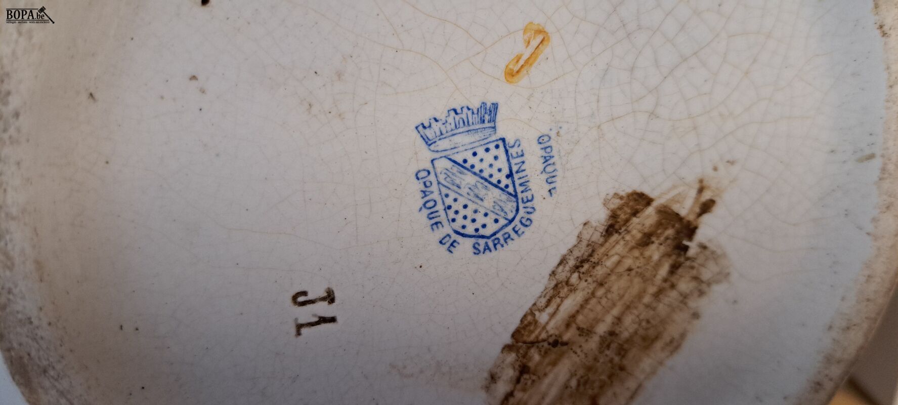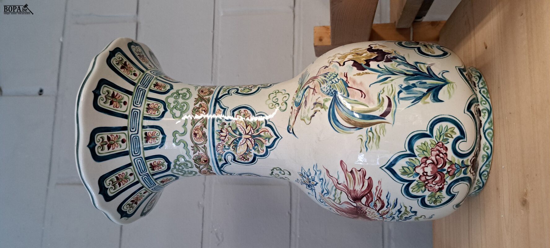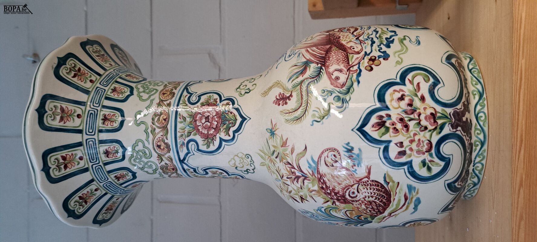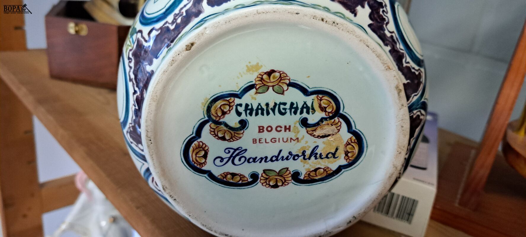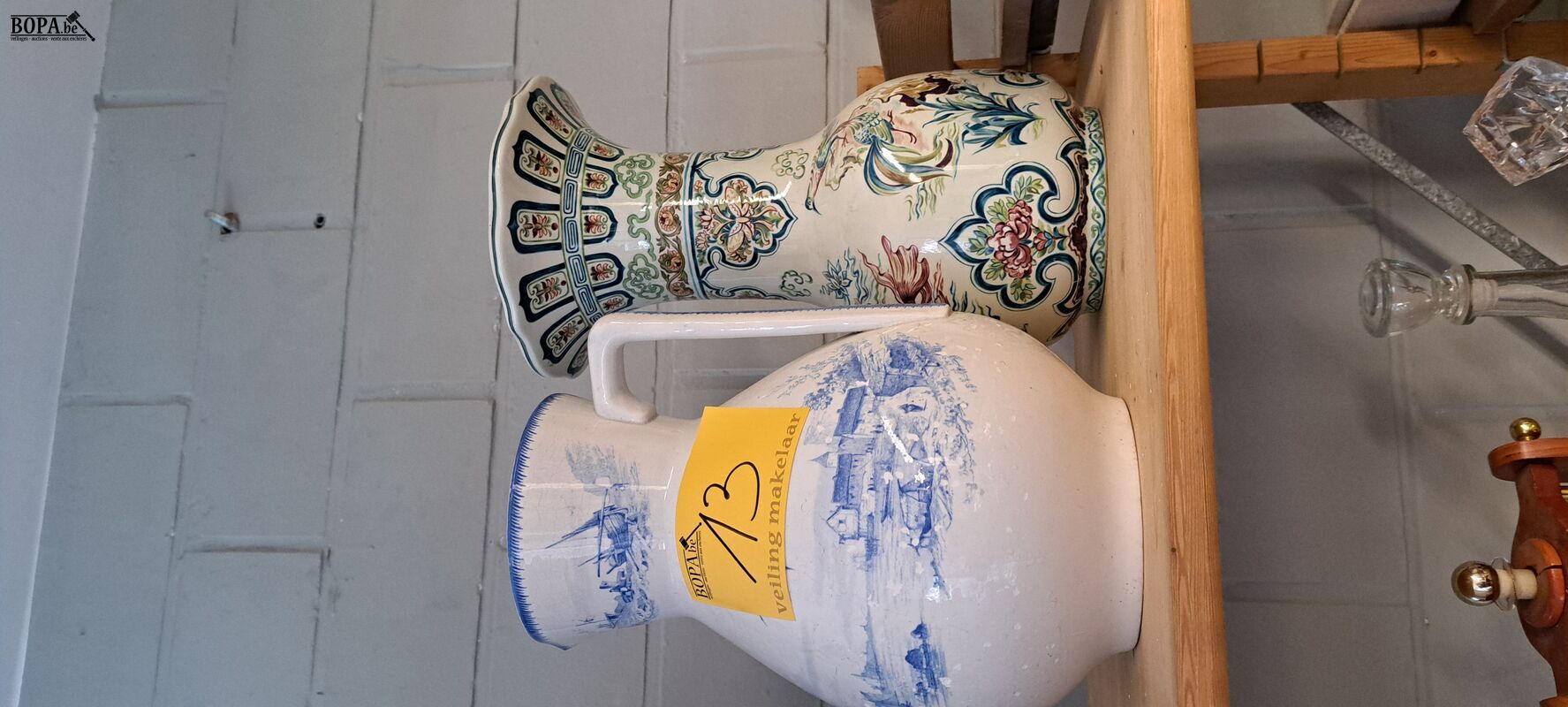 Wit blauwe kan gestempeld. Hoogte 31 cm. Vaas met tekeningen en stempel Boch Belgium Handworked Hoogte 35 cm