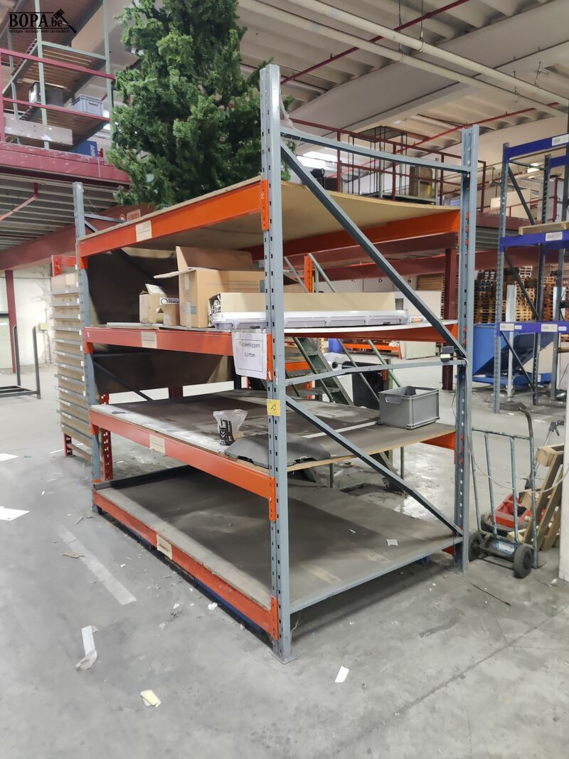 Magazijnstelling bestaande uit 2 staanders van 150 x hoogte 270 cm, 8 liggers van 150 x hoogte 12 cm met 4 legbanken
