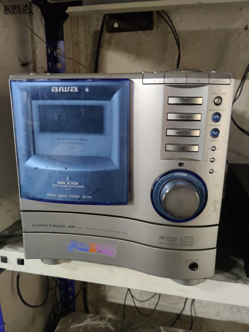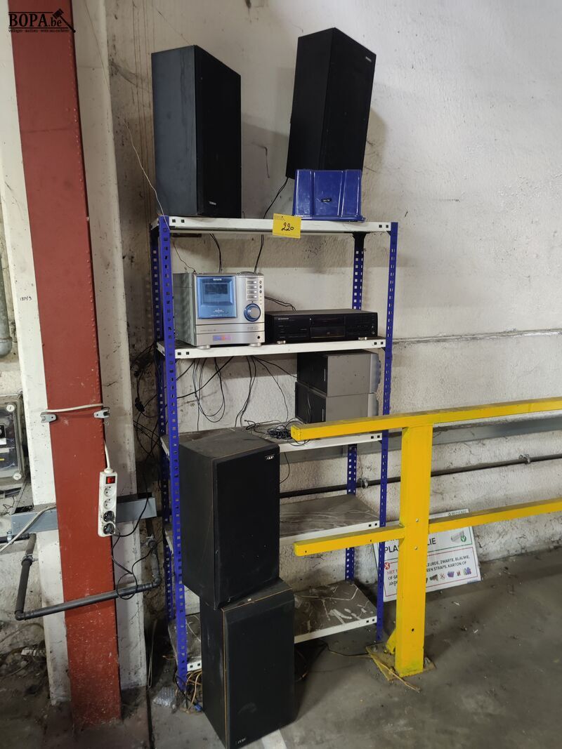 Matelan rekje 90 x 30 x hoogte 160 cm met Aiwa radio en Pioneer cd speler + 6 muziekboxen