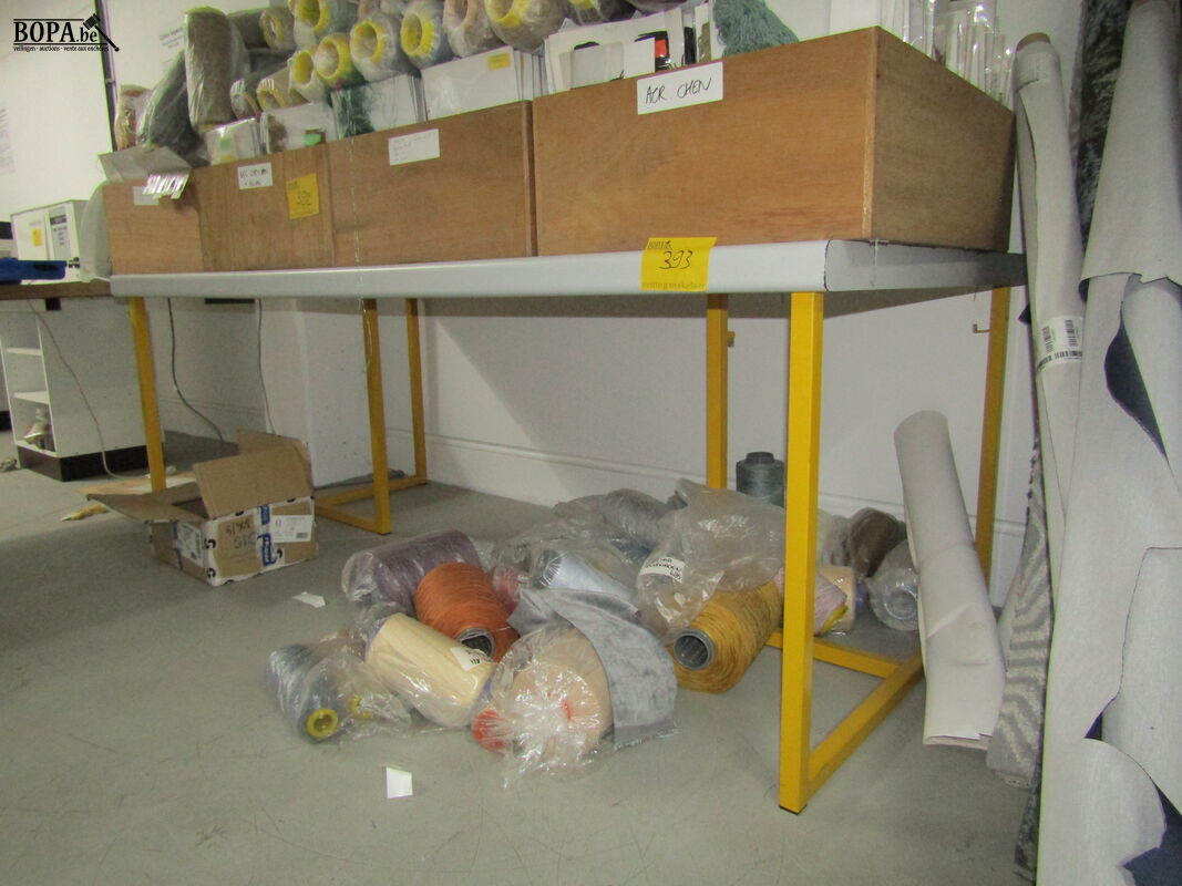 Werktafel met fineerblad en metalen onderstel. 200 x 100 x 76 cm. Makkelijk demonteerbaar.