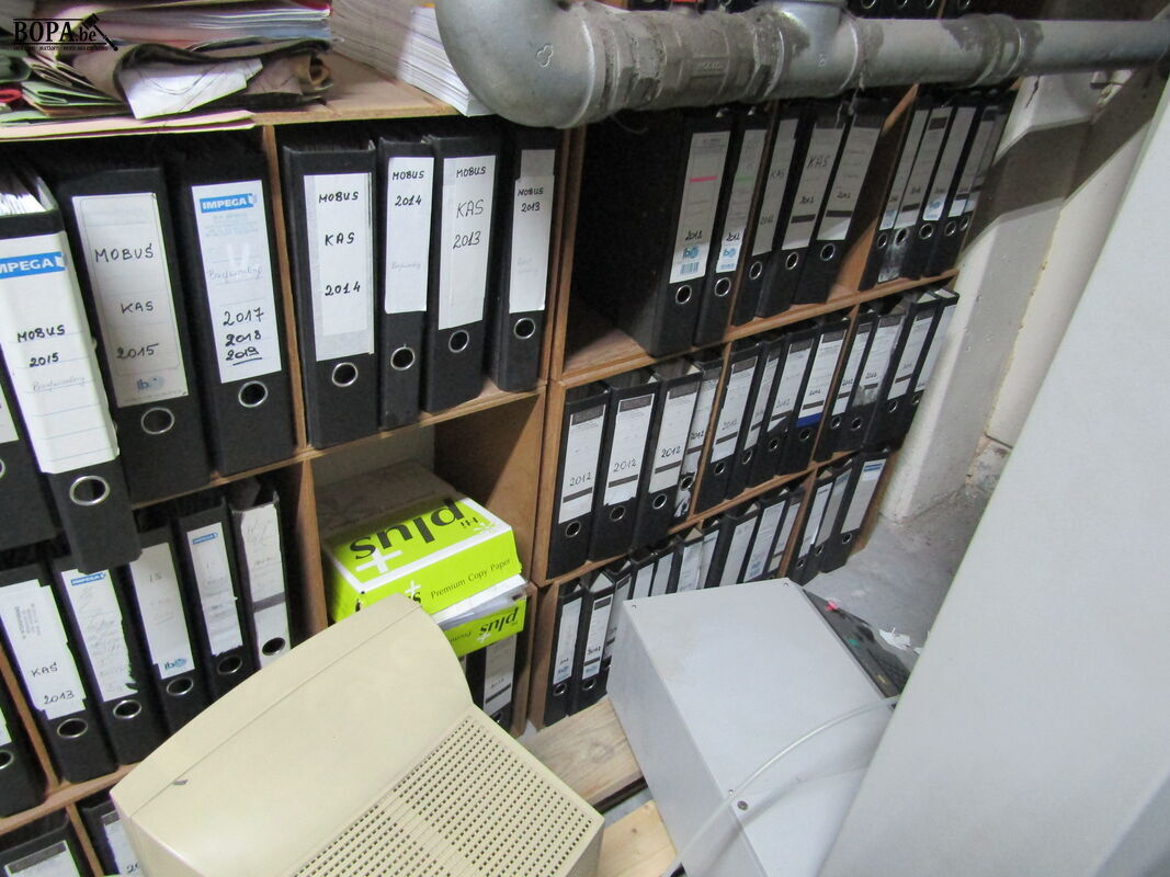 10 houten kastjes (97 x 29 x 36 cm) met ongeveer 60 ringmappen.
