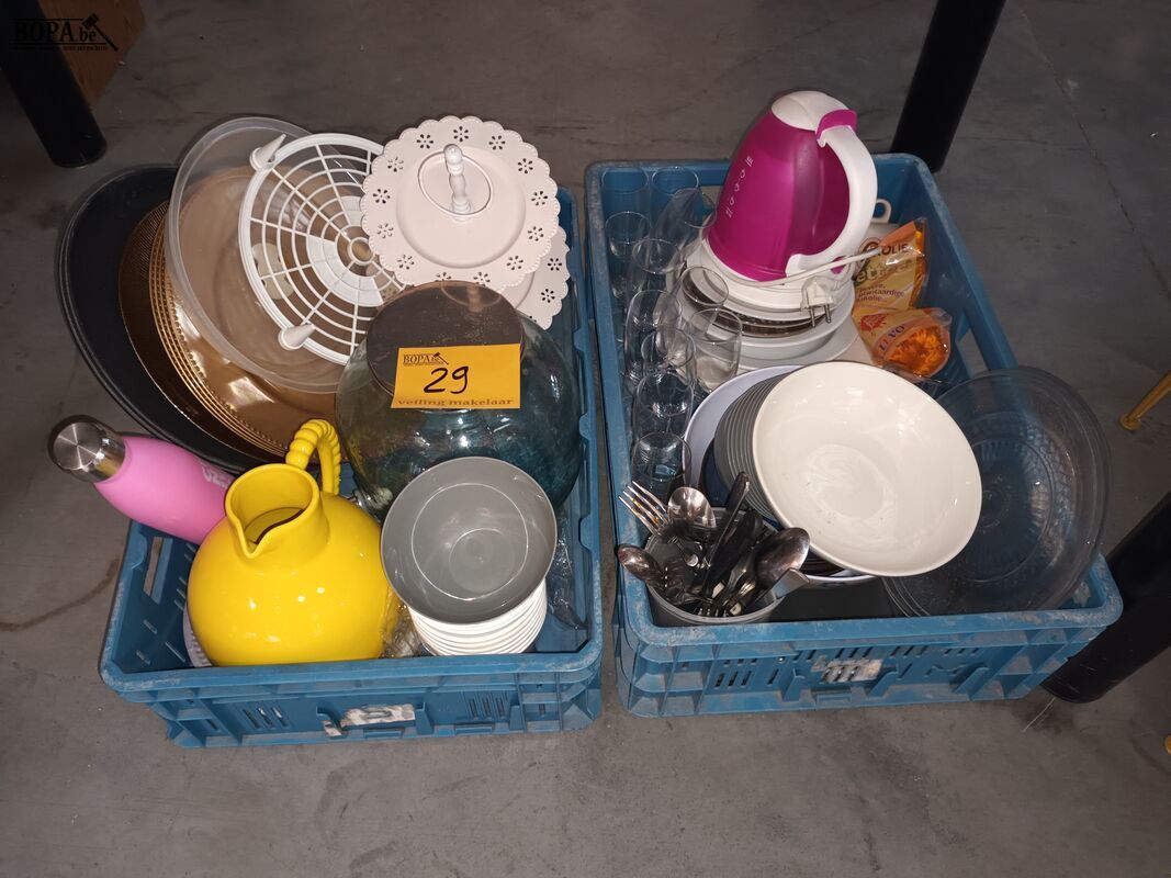 2 bakken met huisraad. Blauwe bakken niet inbegrepen.