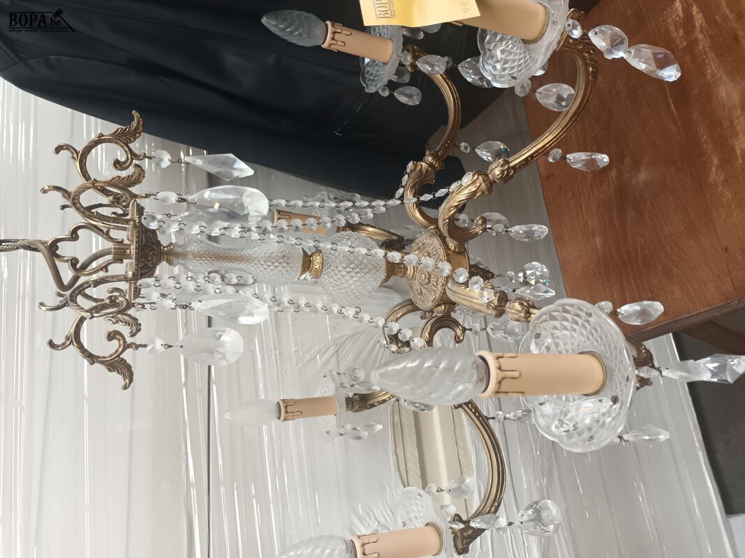 Luster koper met kristallen. Diameter 64 cm. Hoogte 66 cm.
