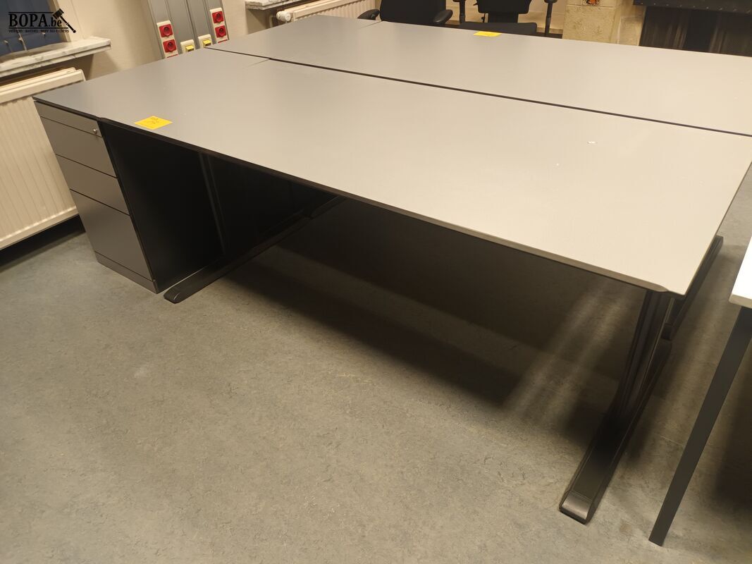 Bureautafel antraciet (180 x 80 x 75cm) met ladeblok (44 x 80 x 75 cm).