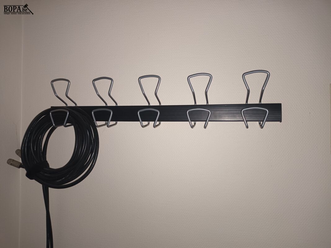 4 kapstokken. Nog te demonteren van de muur. In verschillende ruimtes op het gelijkvloer.