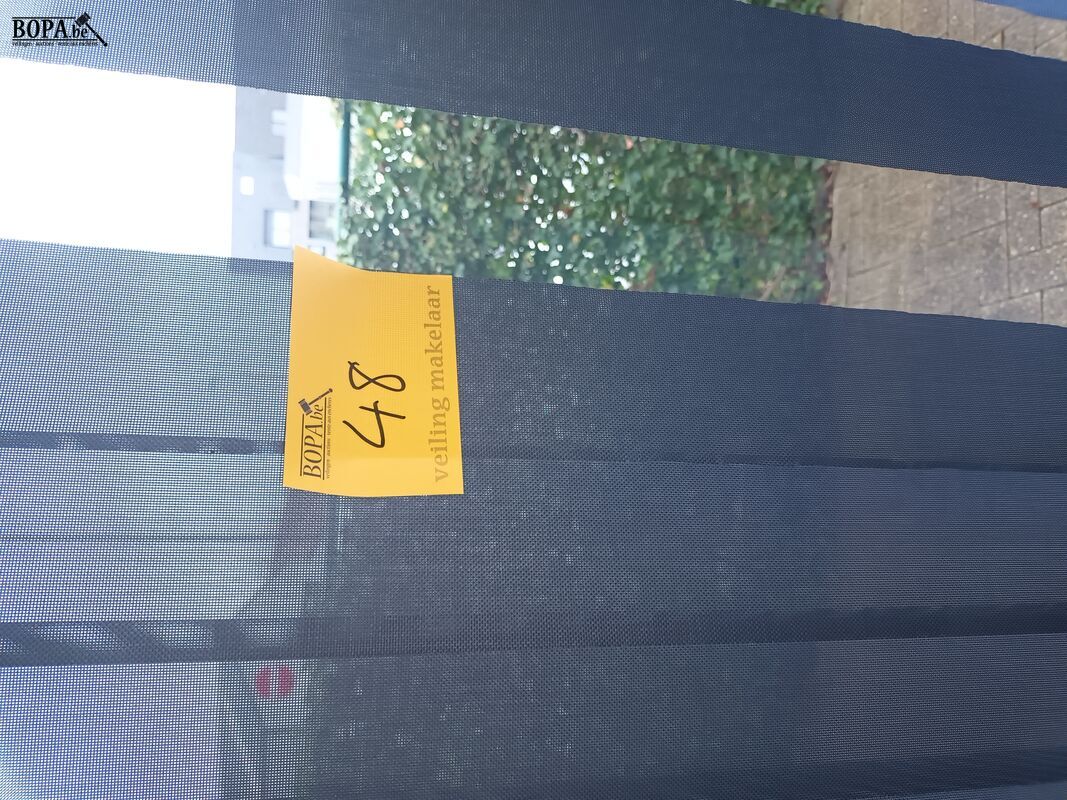 Lamellen gordijn Luxaflex met blauwe lamellen. 310 x 250 cm.