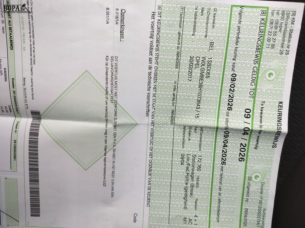 Keuringsattest Aanwezig