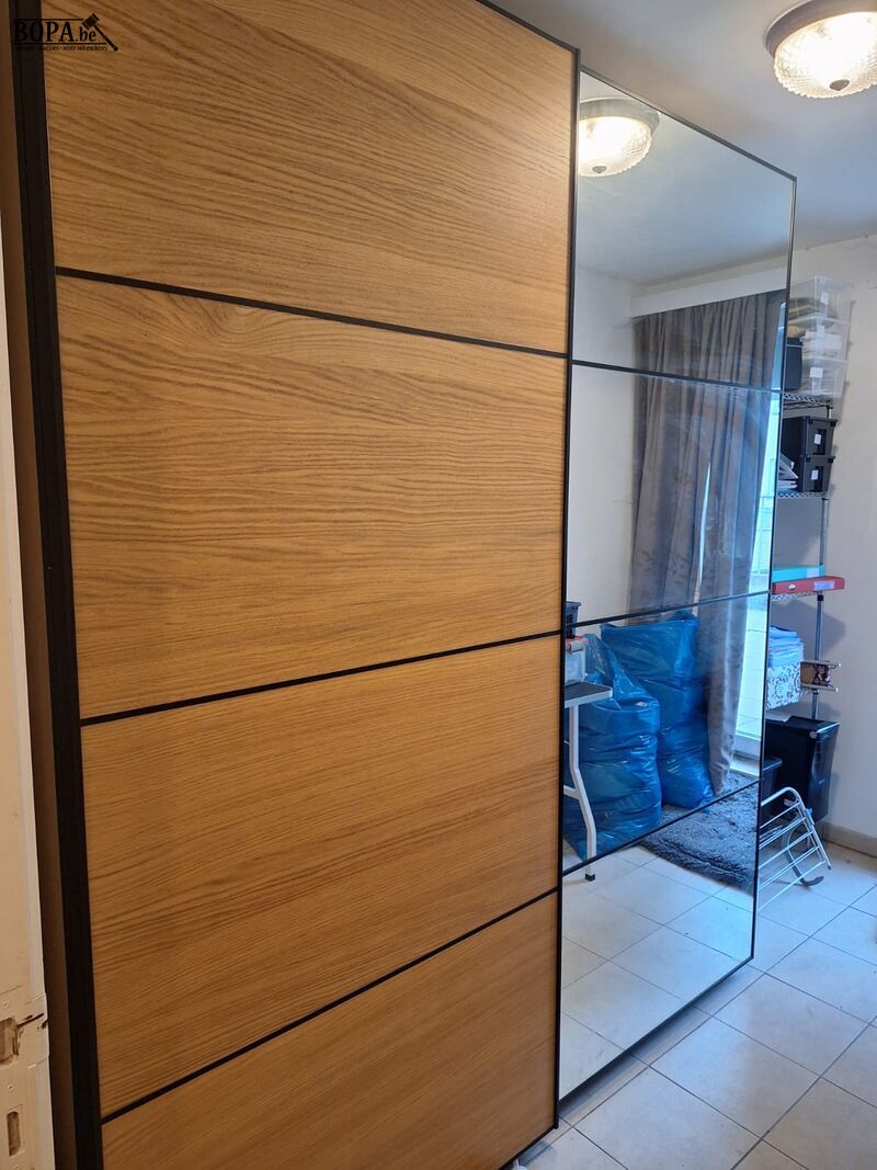 Kleerkast met spiegeldeur. Reeds gedemonteerd.