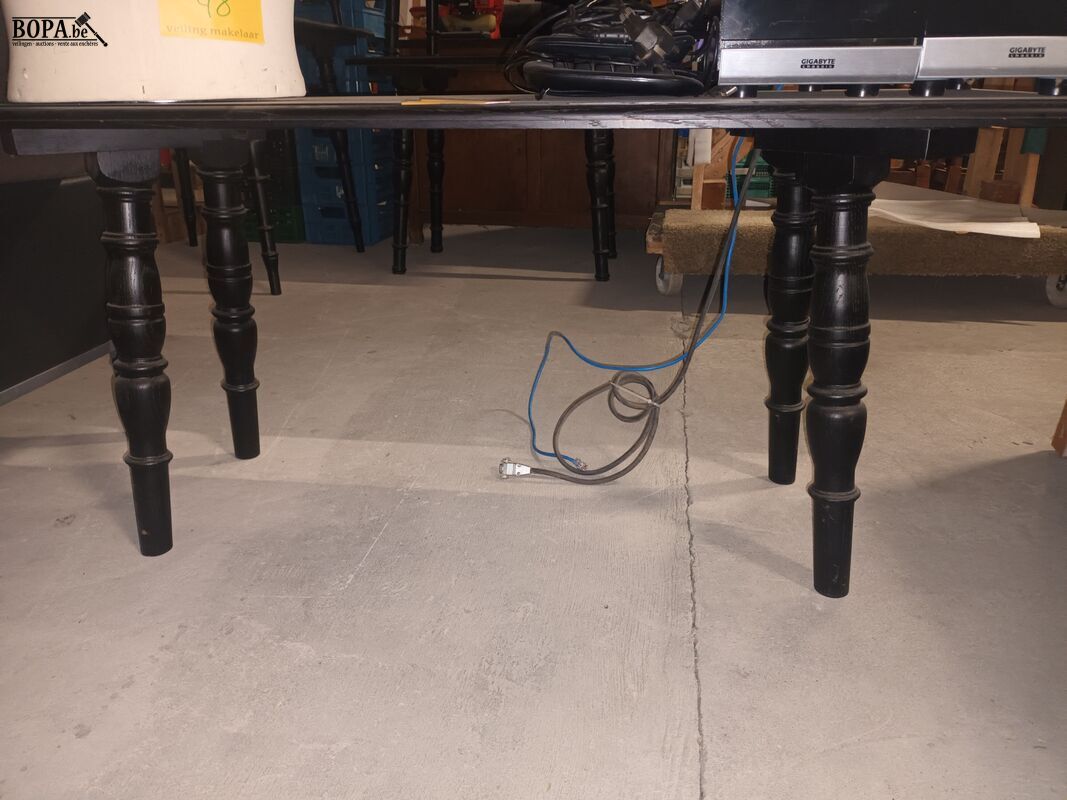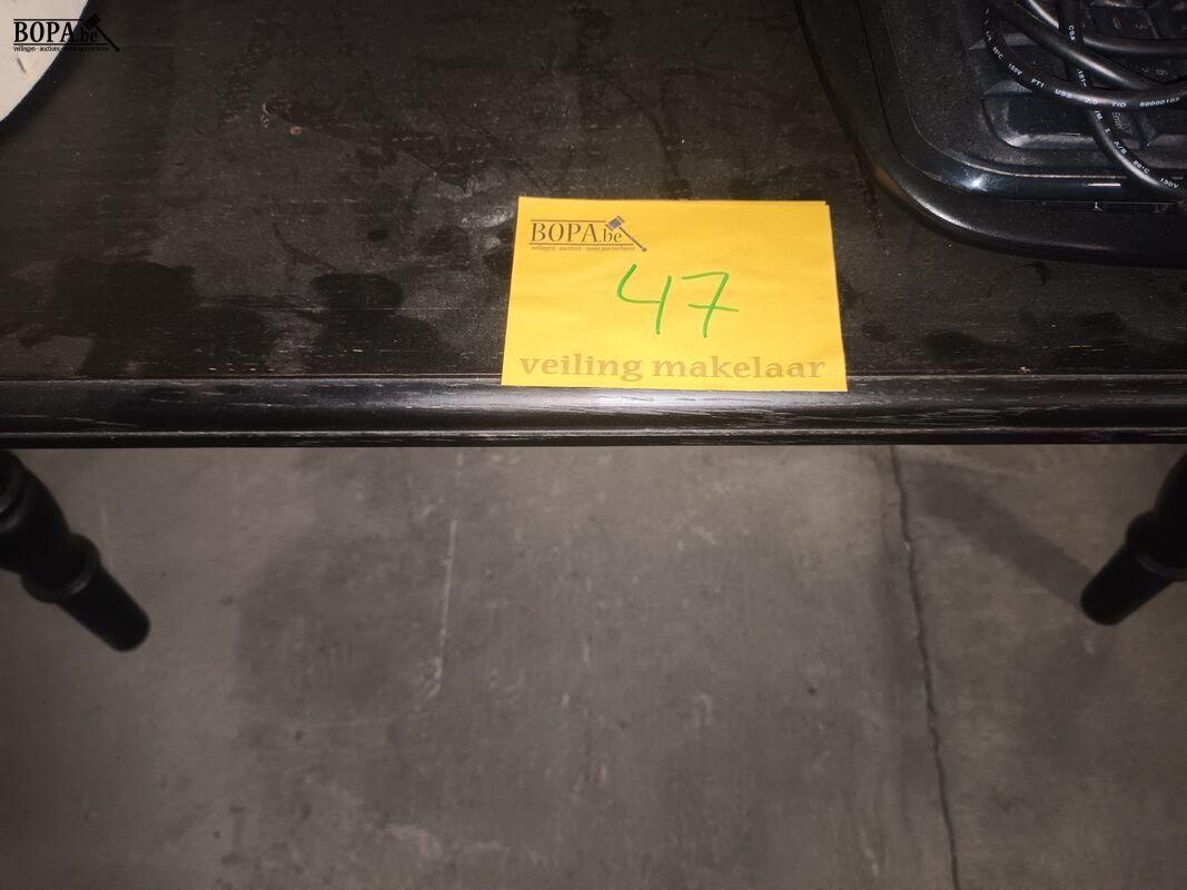 Zwarte houten tafel. 130 x 50 x 58 cm.