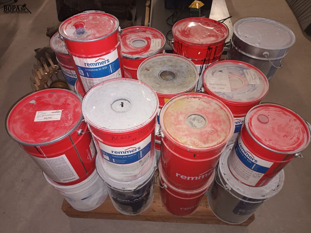 Emmers van 20 liter primers en lakken Remmers. 23 stuks.