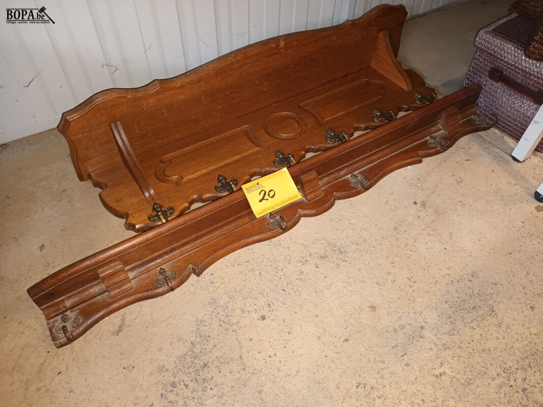 Vintage houten muur kapstokken. 2 stuks. 99X18x26cm en 112x9x10cm.