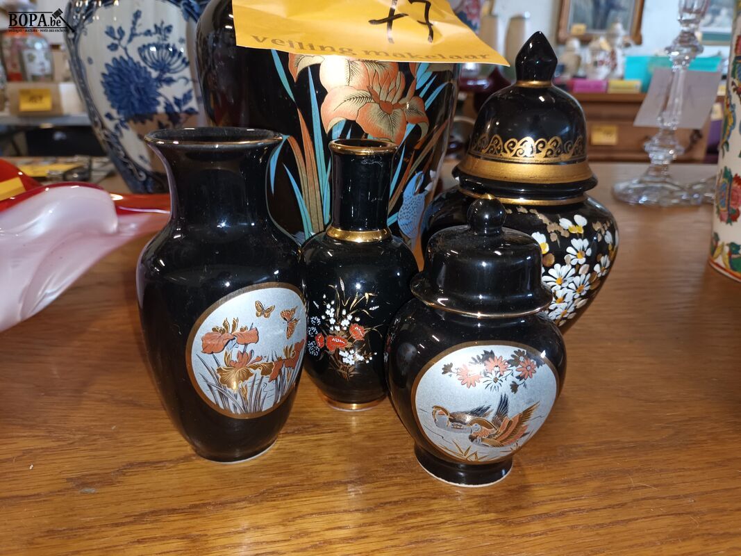 Zwarte vazen. 5 stuks. Hoogte 30 cm, 15 cm, 10 cm.