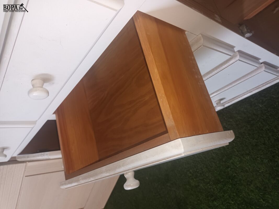 Wit geschilderde buffetkast in 2 delen. 140 x 52 x 203 cm.