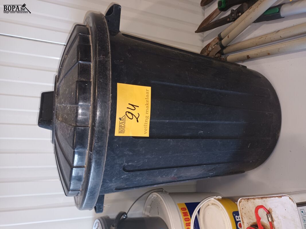 Afvalbak met deksel. Diameter 50cm, hoogte 55cm.