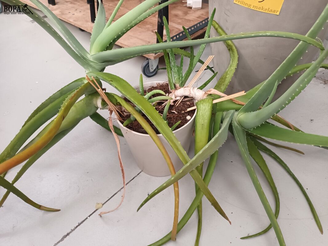 Kamerplant in pot. 2 stuks. Aloë Vera en dwergpalm.