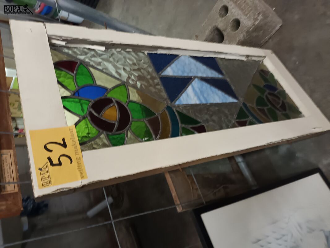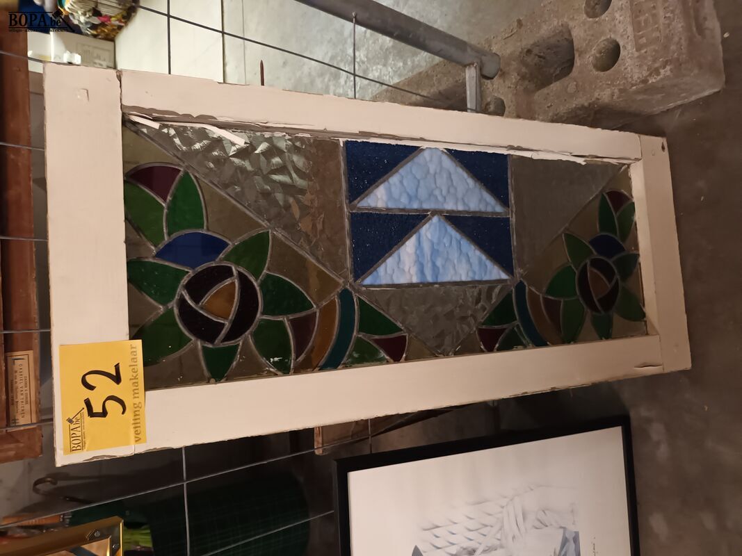 Raam glas in lood. 40 x 93 cm.